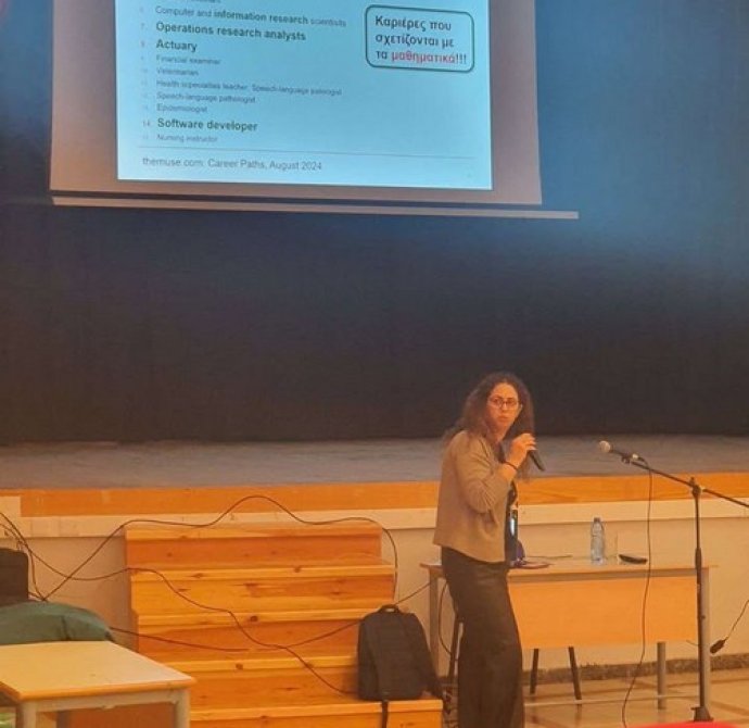 Πραγματοποιήθηκε την Παρασκευή 10 Ιανουαρίου διάλεξη από την καθηγήτρια Κλεοπάτρα Χριστοφόρου του τμήματος Μαθηματικών και Στατιστικής του Πανεπιστημίου Κύπρου, με θέμα «ΓΙΑΤΙ ΝΑ ΣΠΟΥΔΑΣΩ ΜΑΘΗΜΑΤΙΚΑ». Η διάλεξη προσέφερε στους μαθητές μας μια αναλυτική εικόνα για τις δυνατότητες και τις προοπτικές που ανοίγονται με τις σπουδές Μαθηματικών.