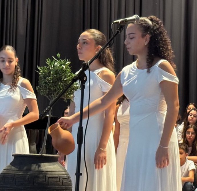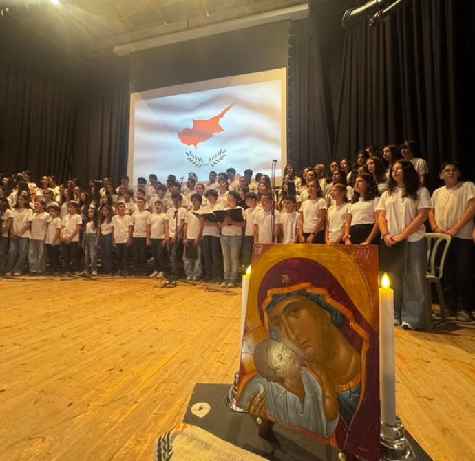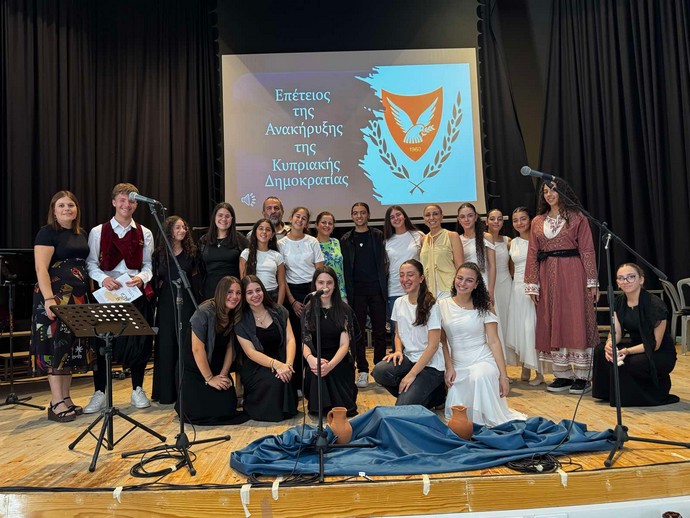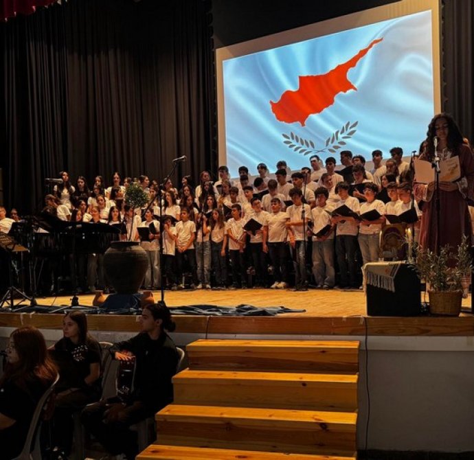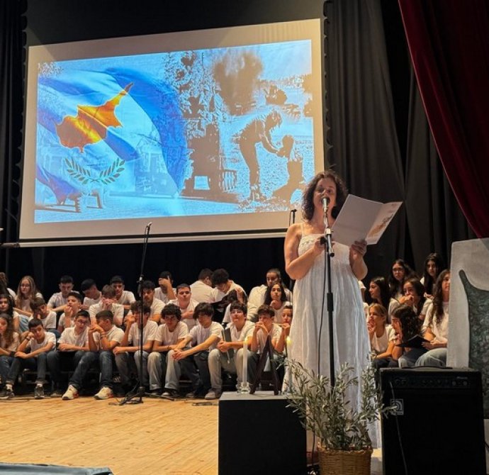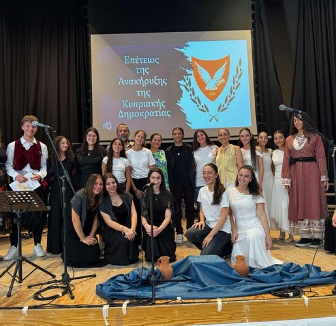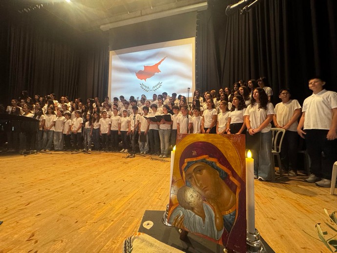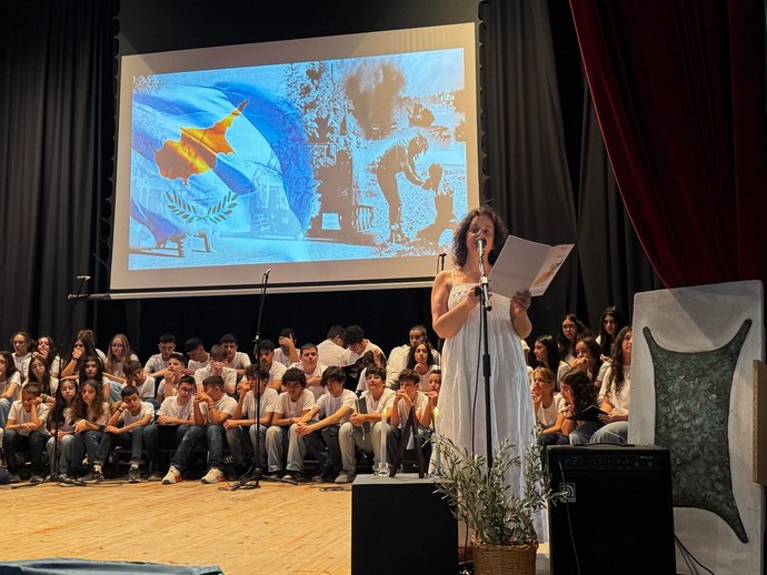 Σε μια σεμνή και κατανυκτική εκδήλωση, μαθητές και εκπαιδευτικοί του Λυκείου Αγ. Γεωργίου Λάρνακας γιόρτασαν την Επέτειο της Κυπριακής Ανεξαρτησίας, που φέτος συμπληρώνει 65 χρόνια.