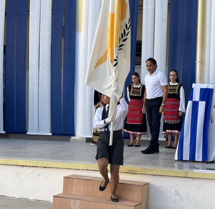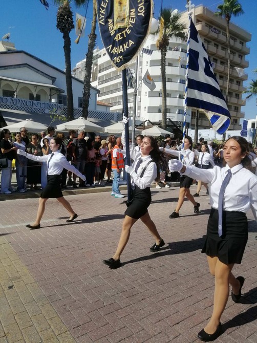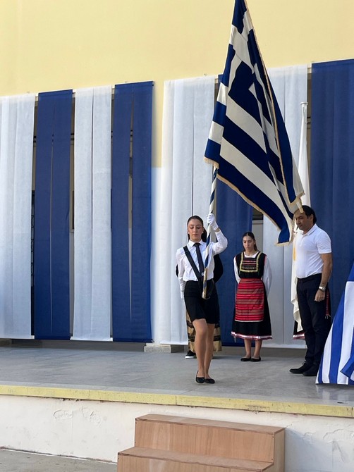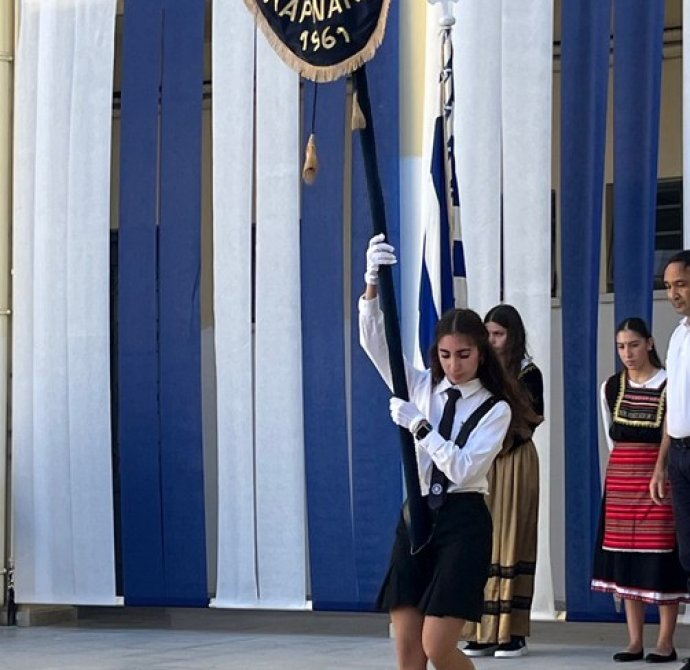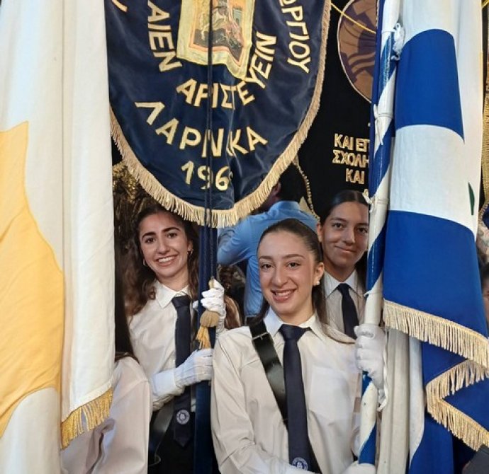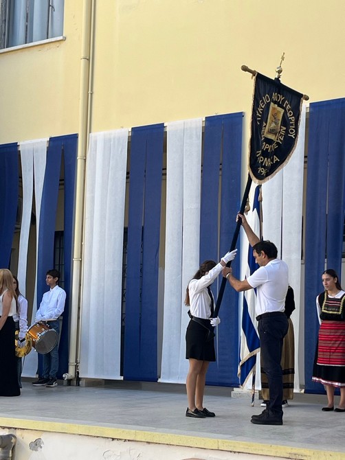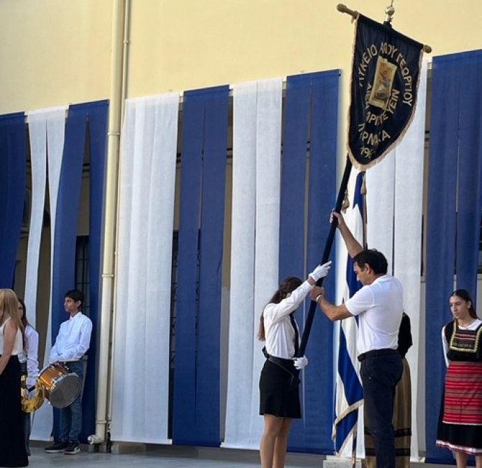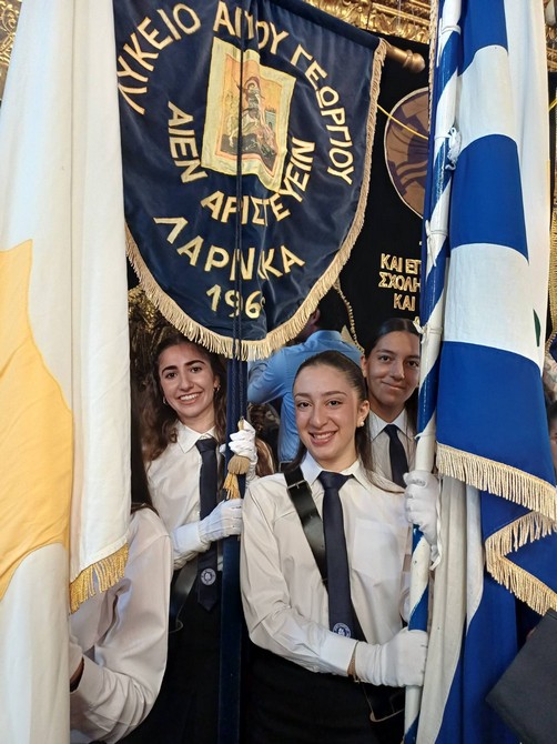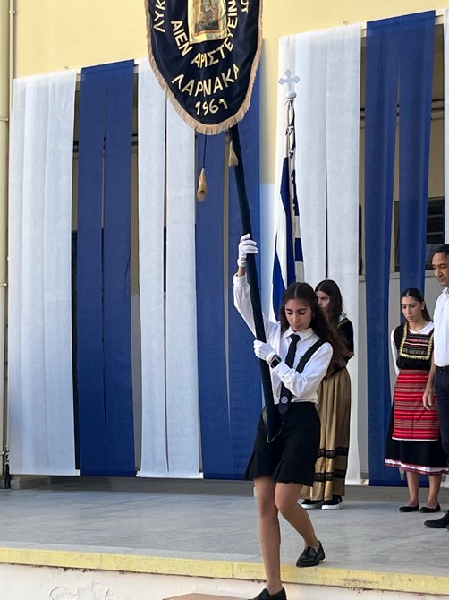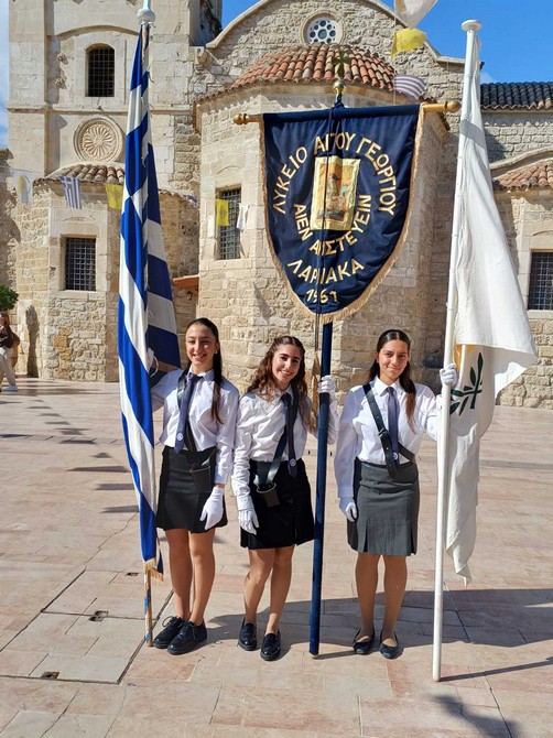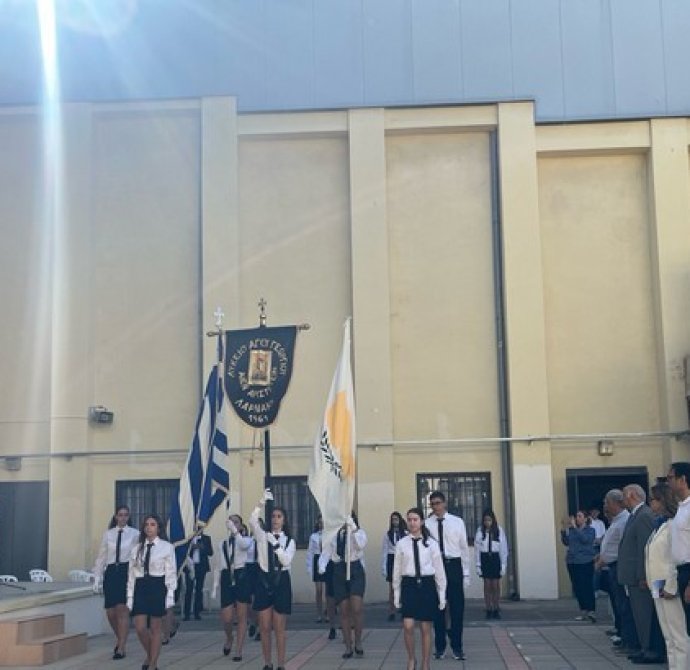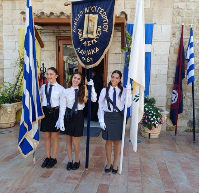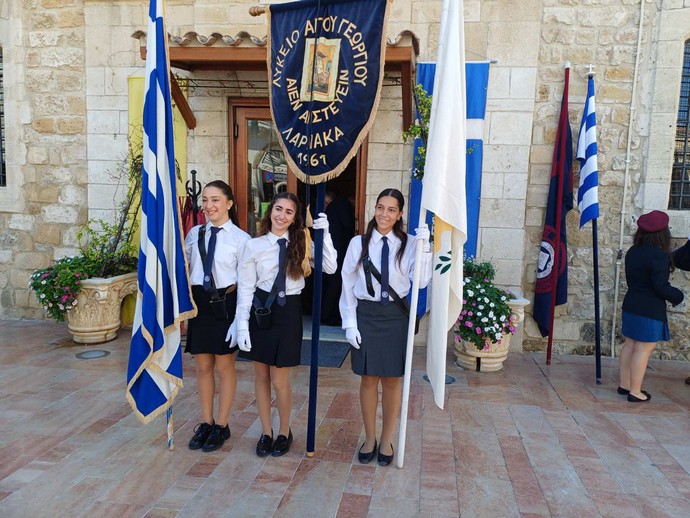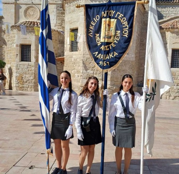Το Λύκειο Αγίου Γεωργίου Λάρνακας, τίμησε με κάθε μεγαλοπρέπεια την Επέτειο του «ΟΧΙ» και τη Γιορτή της Σημαίας. Η 28η Οκτωβρίου είναι μέρα μνήμης και τιμής για όλους τους Έλληνες. Είναι μέρα υπερηφάνειας για το σθένος και τη δύναμη που όρθωσε ο ελληνικός λαός μπροστά στις δυνάμεις του φασισμού. Ο ελληνικός λαός υπερασπίστηκε με θάρρος την ελευθερία και την εθνική του αξιοπρέπεια. Παράλληλα, γιορτάζουμε και τη γιορτή της Σημαίας, ιερό σύμβολο, που εκφράζει την ελευθερία, την ειρήνη και τα ιδανικά του ελληνικού έθνους.