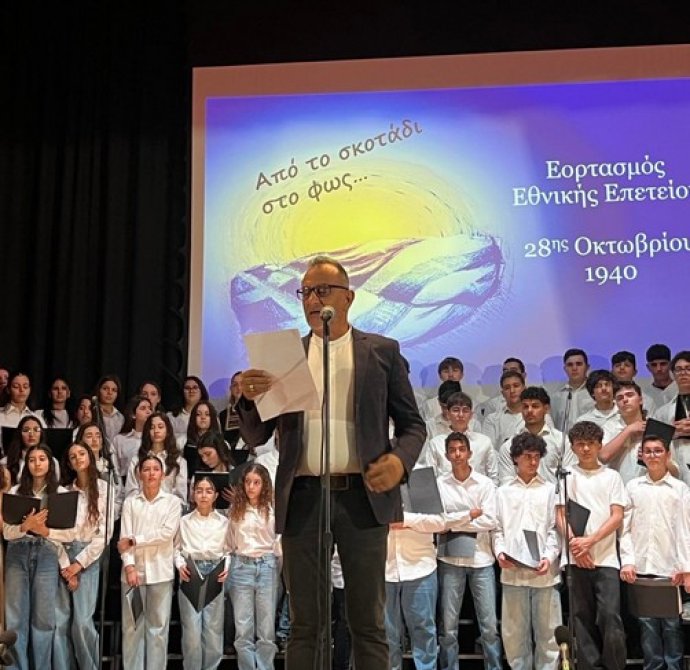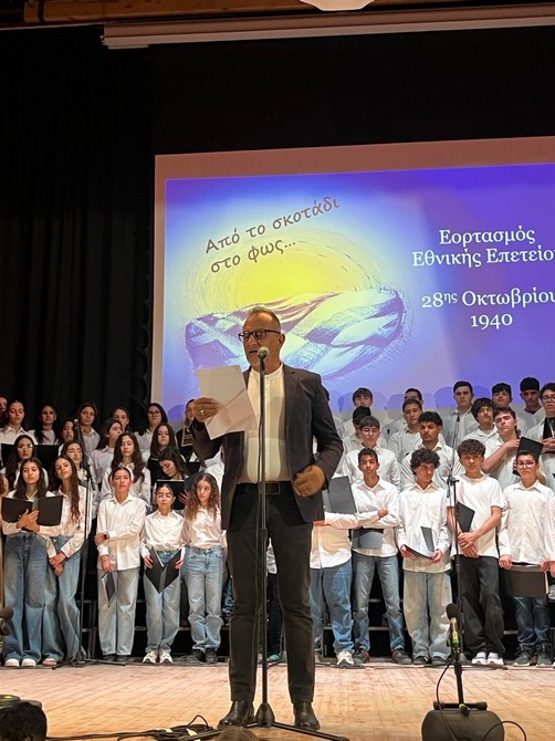 Πραγματοποιήθηκε τη Δευτέρα, 27 Οκτωβρίου 2025 στο Δημοτικό Θέατρο Λάρνακας «Γ. Λυκούργος» ο Πανηγυρικός Εορτασμός της Εθνικής Επετείου της 28ης Οκτωβρίου 1940. Τον Πανηγυρικό χαιρέτισε ο Δήμαρχος Λάρνακας κ. Ανδρέας Βύρας. Ακολούθησε η ομιλία του Λέκτορα Νεότερης και Σύγχρονης Ιστορίας στο Πανεπιστήμιο Νεάπολις Πάφου κ. Κυριάκου Ιακωβίδη με θέμα «Ο αντίκτυπος της 28ης Οκτωβρίου 1940 στη Λάρνακα». Ο Πανηγυρικός ολοκληρώθηκε με το Χορόδραμα «Από το σκοτάδι στο φως», στο οποίο έλαβαν μέρος οι μαθητές/τριες του Λυκείου Αγίου Γεωργίου Λάρνακας και το Μουσικό Σχολείο Λάρνακας. Το χορόδραμα ήταν διανθισμένο με χορωδιακή απαγγελία, τραγούδια και ποίηση.