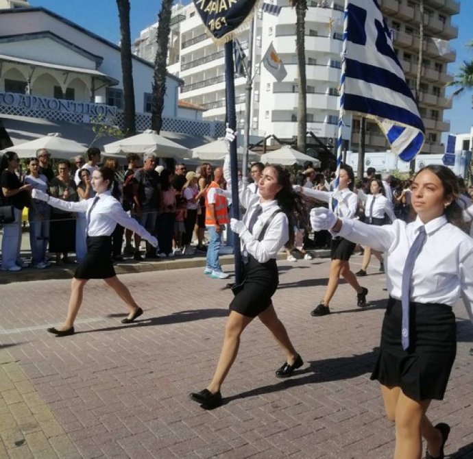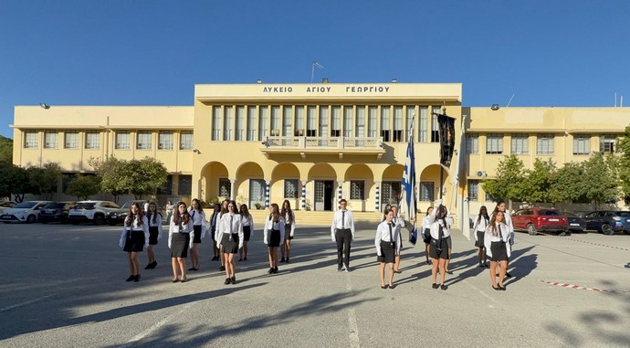 Στην μαθητική Παρέλαση συμμετείχε το Άγημα του Λυκείου Αγίου Γεωργίου με το λάβαρο και τις σημαίες του σχολείου, συνοδευόμενοι από τμήμα κοριτσιών και τμήμα αγοριών, καθώς επίσης και το από το άγημα του Γυμνασίου.