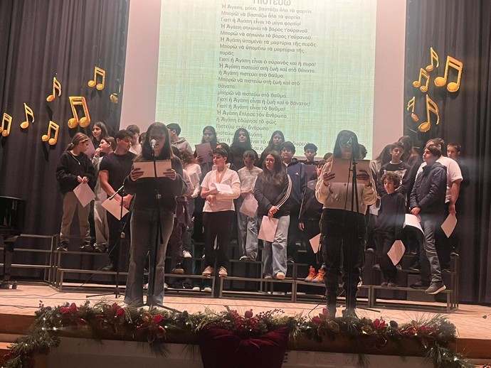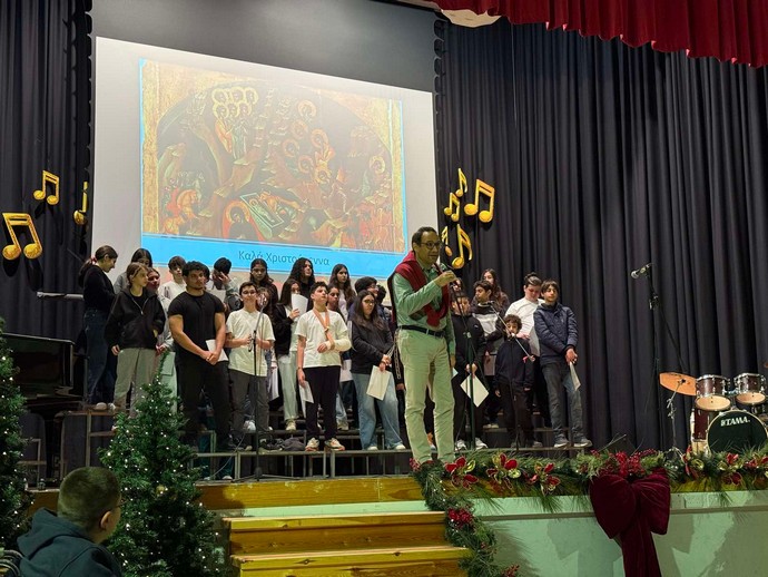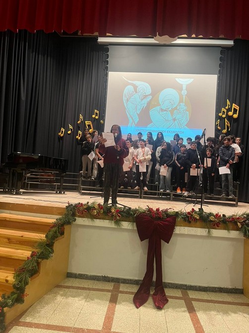 Η εκδήλωση ολοκληρώθηκε με τις θερμές ευχές του Διευθυντή προς τους μαθητές και τους εκπαιδευτικούς για Καλά Χριστούγεννα και Καλή Χρονιά.