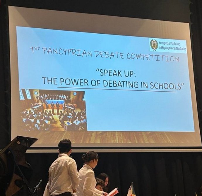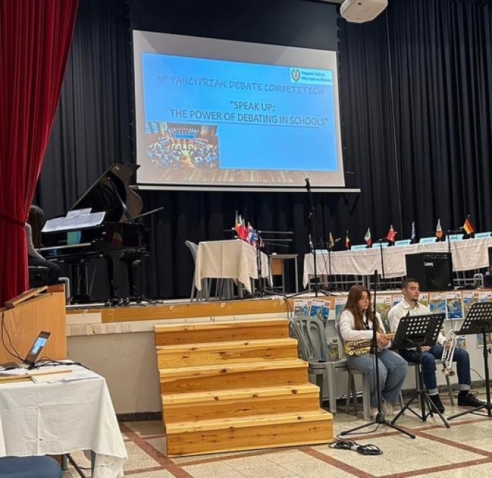 Το σχολείο μας φιλοξένησε, την Τετάρτη 2/4/2025 τον 1ο Παγκύπριο Διαγωνισμό Διαλογικών Συζητήσεων υπό τον τίτλο «Speak Up: The power of Debating»!, που διοργανώθηκε από την Επιθεώρηση Αγγλικών του ΥΠΑΝ. Σε αυτόν συμμετείχαν οκτώ Γυμνάσια από την Επαρχία Λάρνακας και Αμμοχώστου και πέραν των 150 μαθητών/τριών. Την τελετή έναρξη του Διαγωνισμού τίμησε με την παρουσία του και χαιρέτισε ο Δήμαρχος Λάρνακας, κ. Ανδρέας Βύρας, ο οποίος εξήρε το έργο των εκπαιδευτικών και κυρίως των μαθητών/τριών, αλλά και τη σημαντικότητα τέτοιων πρωτοβουλιών για την καλλιέργεια κριτικής σκέψης στους μαθητές/τριες, την επιχειρηματολογία, τις δεξιότητες σε δημόσιες ομιλίες, τη συνεργατικότητα, και την ανάπτυξη πολιτικής κουλτούρας.