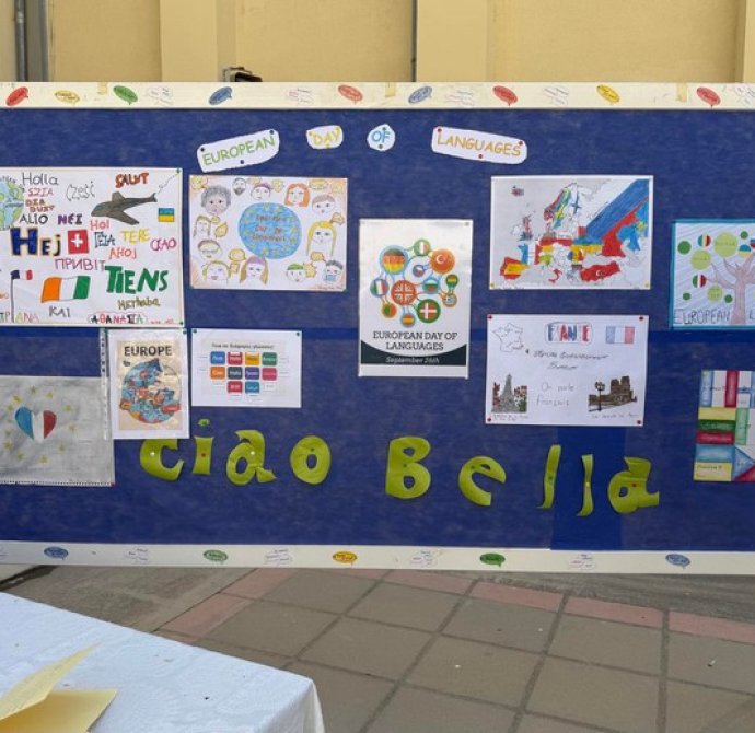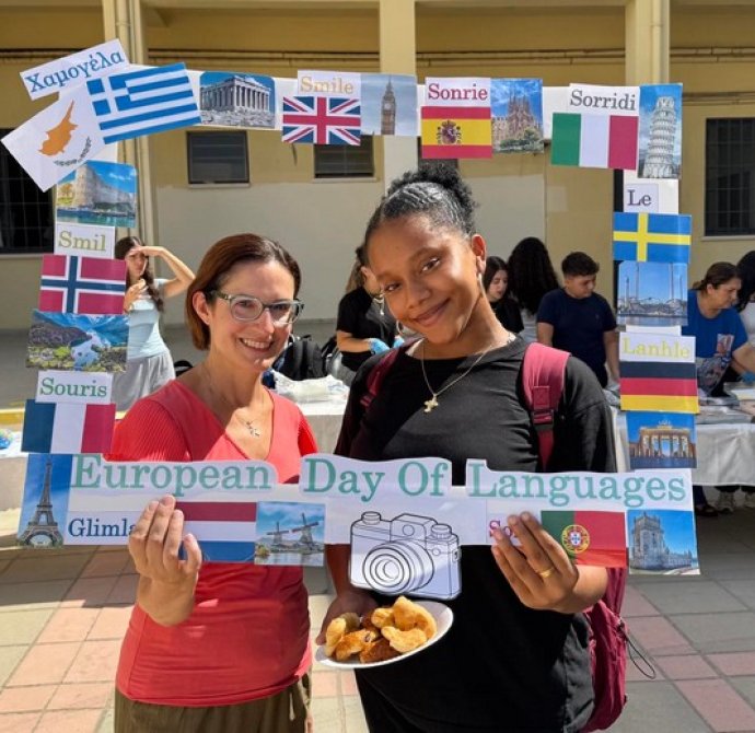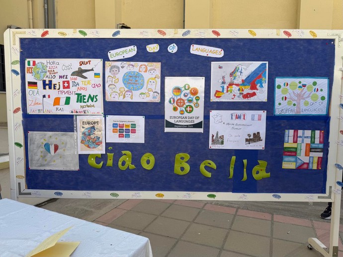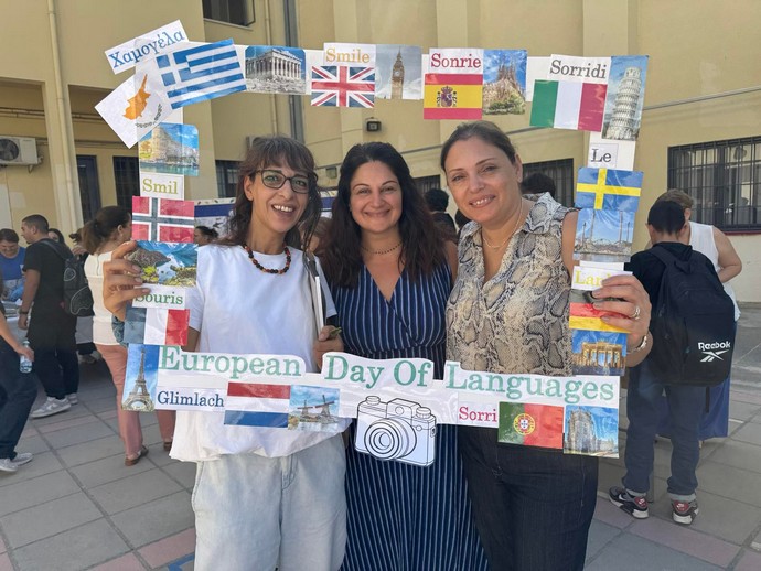 Με αφορμή την Ευρωπαϊκή Ημέρα Γλωσσών, την Παρασκευή 26 Σεπτεμβρίου, καθηγητές και μαθητές διοργάνωσαν εκδήλωση κατά τη διάρκεια των διαλειμμάτων στην αυλή του σχολείου με στόχο την ανάδειξη της σημασίας της πολυγλωσσίας και της πολιτισμικής ποικιλομορφίας. Μαθητές και καθηγητές απόλαυσαν ευρωπαϊκές μελωδίες, συμμετείχαν σε παιχνίδια γνώσεων και πρόσφεραν γλυκά και αλμυρά εδέσματα.