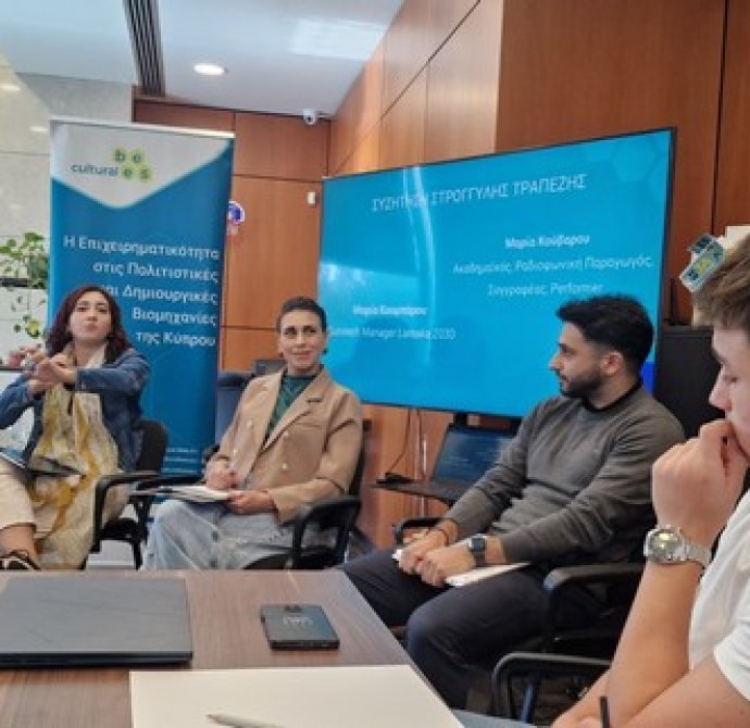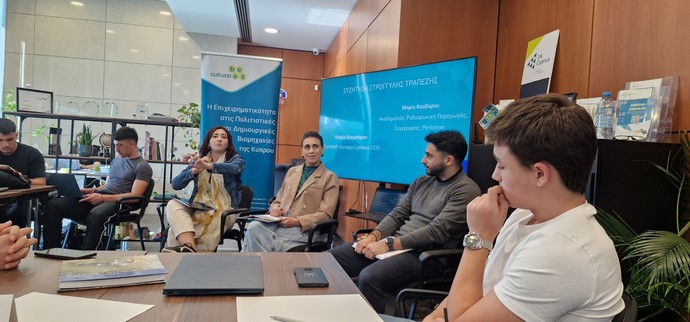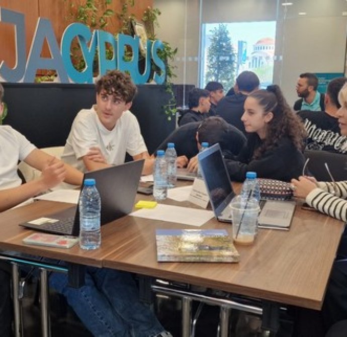 Στο πλαίσιο του Ευρωπαϊκού Προγράμματος Cultural Bees, oμάδα μαθητών και μαθητριών του σχολείου μας συμμετείχε στην Ημερίδα «Καινοτομία Στις Πολιτιστικές και Δημιουργικές Βιομηχανίες», η οποία πραγματοποιήθηκε την Παρασκευή 21 Νοεμβρίου, στα Κεντρικά Γραφεία του οργανισμού Junior Achievement Cyprus.