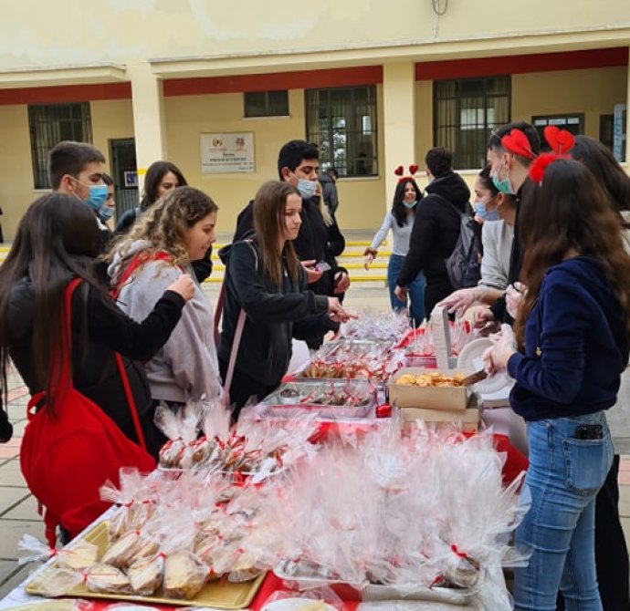 Τη Δευτέρα 14 Φεβρουαρίου 2022, στα πλαίσια της γιορτής του Αγίου Βαλεντίνου, ομάδα μαθητών του σχολείου μας διοργάνωσαν φιλανθρωπικό παζαράκι με γλυκά, λουλούδια και αρωματικά σκευάσματα, τα έσοδα του οποίου θα διατεθούν για την Πρόνοια του Σχολείου.