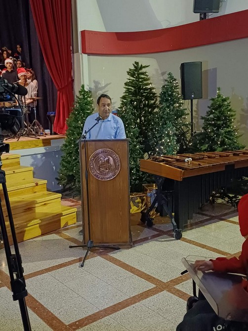 Πραγματοποιήθηκε με μεγάλη επιτυχία στην παρουσία του Δημάρχου Λάρνακας, Δημοτικών Συμβούλων, Εκπροσώπου του Υφυπουργείου Κοινωνικής Πρόνοιας, του Διευθυντή της Αρχής Ηλεκτρισμού στη Λάρνακα, της Επαρχιακής Επιθεωρήτριας Λάρνακας - Αμμοχώστου και πολλών άλλων εκλεκτών προσκεκλημένων στο Θέατρου του Λυκείου Αγίου Γεωργίου Λάρνακας «Λεύκιος Ζαφειρίου» το «Συναπάντημα Αγάπης», ένα συναπάντημα που περικλείει μέσα του την αγάπη, την ανθρωπιά, την αποδοχή, στη συμπερίληψη. Όπως είπε και στην ομιλία του ο Διευθυντής του Σχολείου κ. Αντώνης Σταύρου: «Στη σημερινή εκδήλωση συμμετέχει η εκατονταμελής χορωδία και ορχήστρα του Σχολείου μας, ενώ έχουμε τη χαρά και την τιμή να μας παρακολουθούν παιδιά των Δημοτικών Σχολείων, καθώς και παιδιά των Ειδικών Σχολείων της πόλης μας («Ειδικό Σχολείο Άγιος Σπυρίδωνας», «Ιασόνειο – Χρώματα Ζωής», «Κέντρο ΑΜΕΑ, Άγιος Λάζαρος», «Ηλιακτίδα Ζωής», «Παγκύπριος Σύνδεσμος για άτομα με αυτισμό – Κέντρο Παρέμβασης Λάρνακας»). Η παρουσία όλων μας εδώ σήμερα αποδεικνύει πως το σχολείο μπορεί και πρέπει να είναι ένας χώρος ανοιχτός, φιλόξενος και γεμάτος αποδοχή. Η μουσική, ως παγκόσμια γλώσσα, μας ενώνει, μας συγκινεί και μας θυμίζει ότι η αγάπη, ο σεβασμός και η αλληλεγγύη είναι αξίες που καλλιεργούνται μας συνοδεύουν σε όλη μας τη ζωή. Το «Συναπάντημα Αγάπης» δεν είναι απλώς μια συναυλία, αλλά μια συνάντηση καρδιών, μια γιορτή συμπερίληψης και ανθρωπιάς». Ο Διευθυντής συνεχάρη όλους τους μαθητές που συμμετείχαν, καθώς και στους εκπαιδευτικούς που τους καθοδήγησαν με αφοσίωση και ευαισθησία σε αυτό το όμορφο συναπάντημα αγάπης και ανθρωπιάς τους μαθητές. Επίσης, ευχαρίστησε όλους όσοι παραβρέθηκαν και στήριξαν το «Συναπάντημα Αγάπης». Τέλος, ευχήθηκε η σημερινή Χριστουγεννιάτικη συναυλία να γεμίσει τις καρδιές όλων μας με χαρά, φως και αισιοδοξία και να αποτελέσει ένα όμορφο μήνυμα αγάπης ενόψει των Χριστουγέννων.