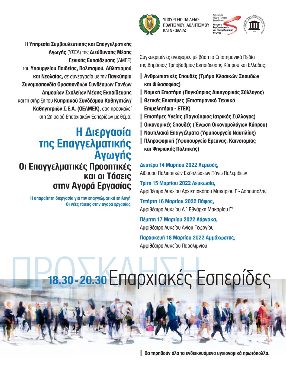 | ΕΠΑΡΧΙΑΚΗ ΕΣΠΕΡΙΔΑ ΣΤΗ ΛΑΡΝΑΚΑ Πέμπτη 23 Φεβρουαρίου 18:30, Λύκειο Αγίου Γεωργίου |