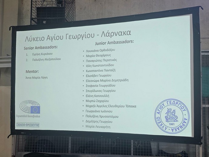 Οι μαθητές – πρεσβευτές διακρίθηκαν για τον ενθουσιασμό, τη δημιουργικότητα και τη δέσμευσή τους στις αξίες της Ευρωπαϊκής Ένωσης, αναλαμβάνοντας δράσεις που ανέδειξαν την έννοια της ενεργούς πολιτότητας και του σεβασμού στη διαφορετικότητα.