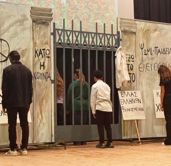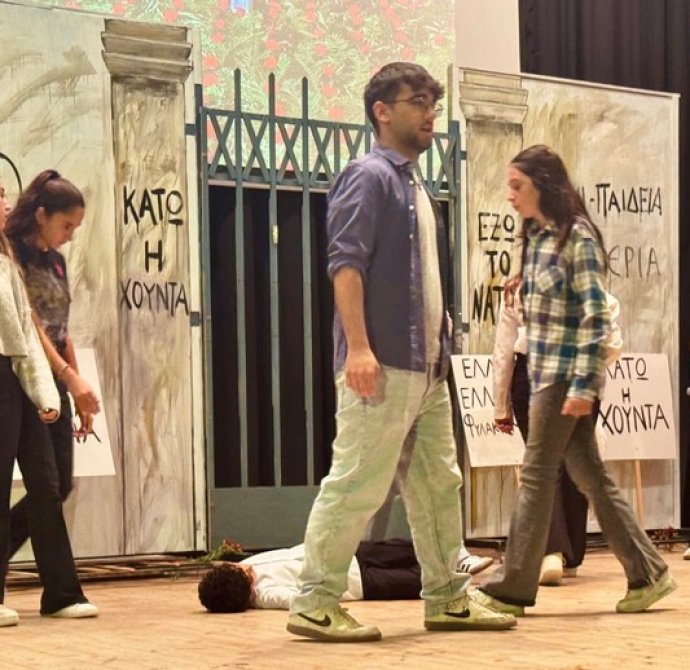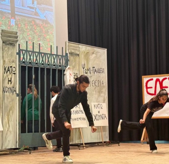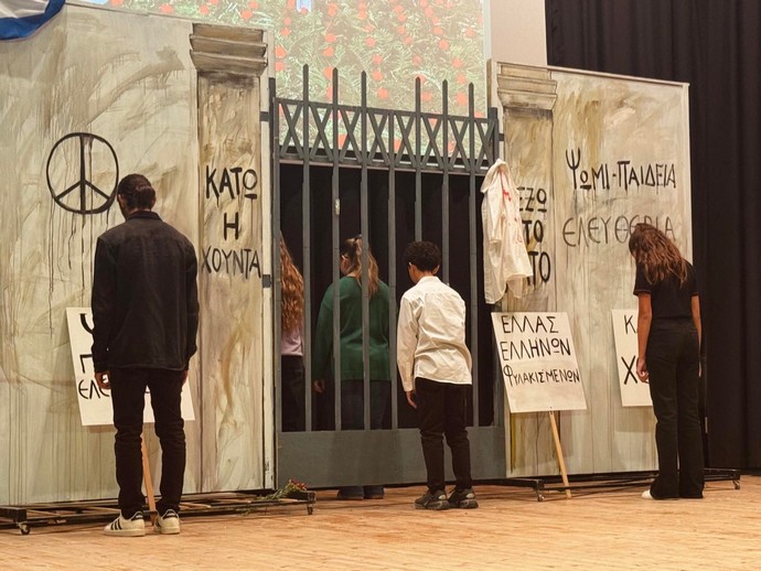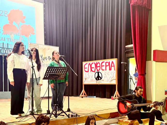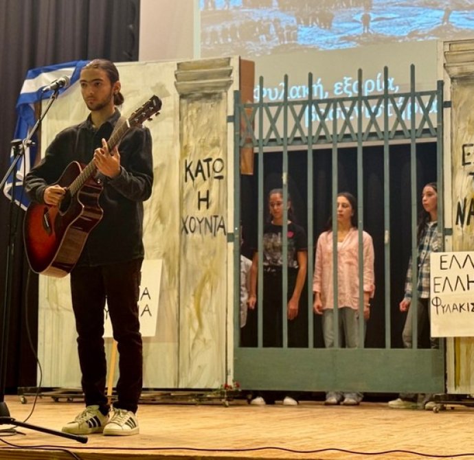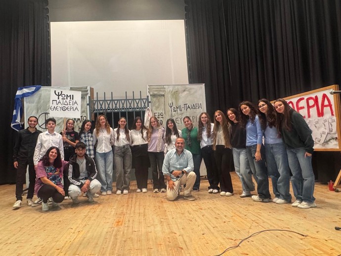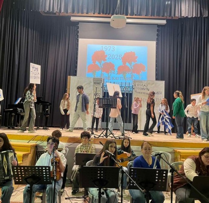 Με την ευκαιρία της συμπλήρωσης πενήντα δύο χρόνων από την ιστορική εξέγερση του Πολυτεχνείου, οι μαθητές και οι μαθήτριες του Λυκείου Αγίου Γεωργίου Λάρνακας τίμησαν, σε μια λιτή και σεμνή τελετή, τους φοιτητές και τις φοιτήτριες που ύψωσαν το ανάστημά τους απέναντι στη Χούντα των Συνταγματαρχών.