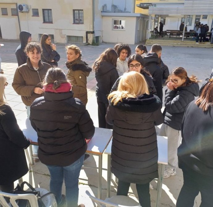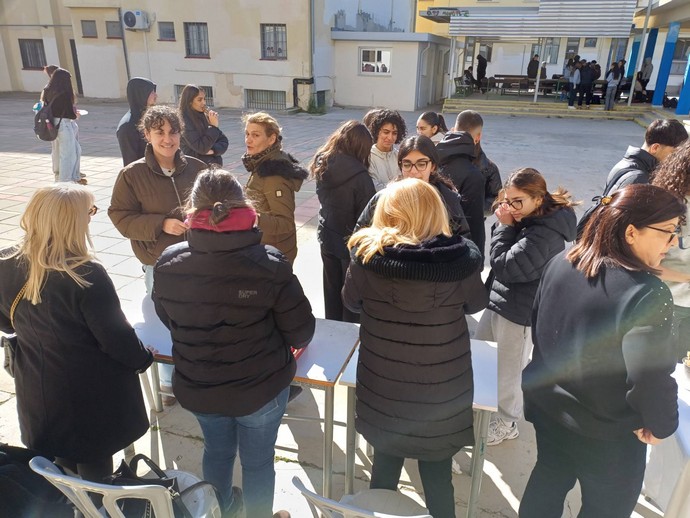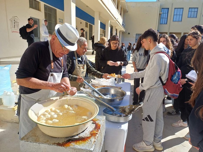 Μαθητές και εκπαιδευτικοί είχαν την ευκαιρία να απολαύσουν φρεσκοτηγανισμένους, αφράτους και ζεστούς λουκουμάδες, σε μια όμορφη και ευχάριστη ατμόσφαιρα.