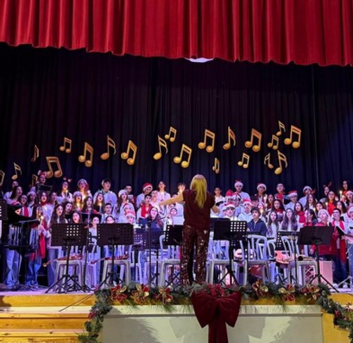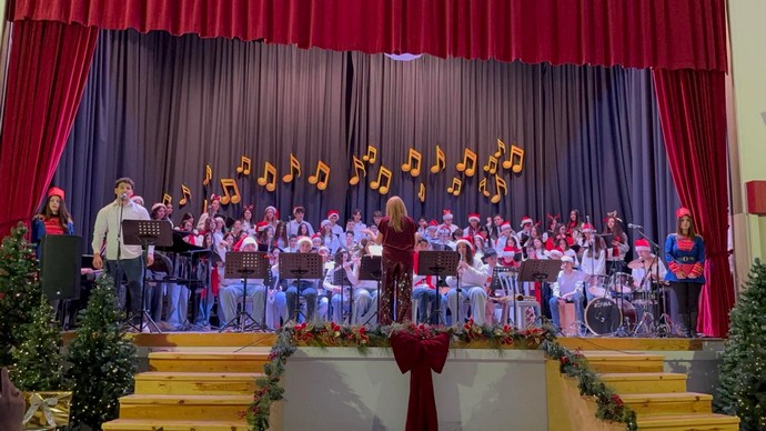 Η βραδινή Χριστουγεννιάτικη Συναυλία «Μια νύκτα γεμάτη ευχές που γίνονται τραγούδια» στέφθηκε επίσης με μεγάλη επιτυχία, αφού έδωσαν το παρών τους Βουλευτές, Δημοτικοί Σύμβουλοι, η Πρόεδρος της Σχολικής Εφορείας Λάρνακας, ο Υπεύθυνος της ΕΟΑΛ, ο Διευθυντής της Αρχής Λιμένων στη Λάρνακα, ο Πρόεδρος και Μέλη της Συνομοσπονδίας Γονέων, ο Πρόεδρος και Μέλη του Συνδέσμου Γονέων του Σχολείου, πρώην Διευθύντριες του Σχολείου, γονείς και πλήθος κόσμου. Η εκατονταμελής χορωδία και ορχήστρα του Σχολείου μας, χάρισε μοναδικά χριστουγεννιάτικα τραγούδια. Το πρόγραμμα διανθίστηκε με πεζά και ποιητικά κείμενα. Η μουσική αυτές τις άγιες μέρες, μας ενώνει και μας θυμίζει ότι η αγάπη είναι μια αξία που χαρακτηρίζει τις μέρες των Χριστουγέννων. Ο Διευθυντής συνεχάρη ακόμα μια φορά όλους τους μαθητές που συμμετείχαν, καθώς και στους εκπαιδευτικούς που τους καθοδήγησαν στην όμορφη αυτή Χριστουγεννιάτικη Συναυλία, όπου οι ευχές έγιναν νότες και οι νότες έγιναν τραγούδια. Επίσης, ευχαρίστησε όλους όσοι παραβρέθηκαν και στήριξαν τη Χριστουγεννιάτικη Συναυλία του Σχολείου μας, που πλέον έγινε θεσμός. Τέλος, ευχήθηκε η σημερινή Χριστουγεννιάτικη συναυλία να γεμίσει τις καρδιές όλων μας με χαρά, φως και αισιοδοξία και να αποτελέσει ένα όμορφο μήνυμα αγάπης ενόψει των Χριστουγέννων.