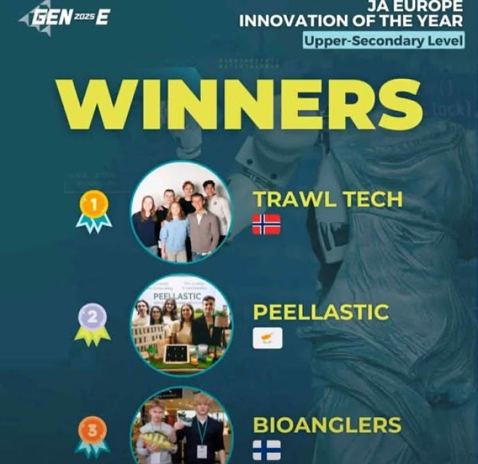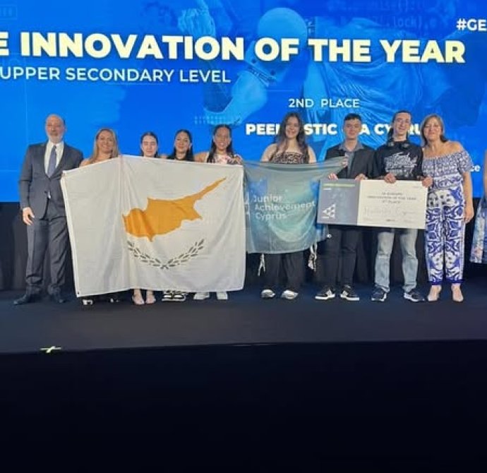 Μεγάλη επιτυχία για τη Μαθητική Επιχείρηση Peellastic του Λυκείου Αγίου Γεωργίου Λάρνακας, η οποία κατέκτησε τη 2η θέση, ανάμεσα σε 40 χώρες, στην κατηγορία Καινοτομίας στον Ευρωπαϊκό Διαγωνισμό Περιβαλλοντικής Επιχειρηματικότητας GEN_E 2025, καθώς και το ειδικό βραβείο TITAN Future Horizons. Ο διαγωνισμός διοργανώθηκε από το JA Europe και πραγματοποιήθηκε στην Αθήνα, από την 1-3/7/2025.