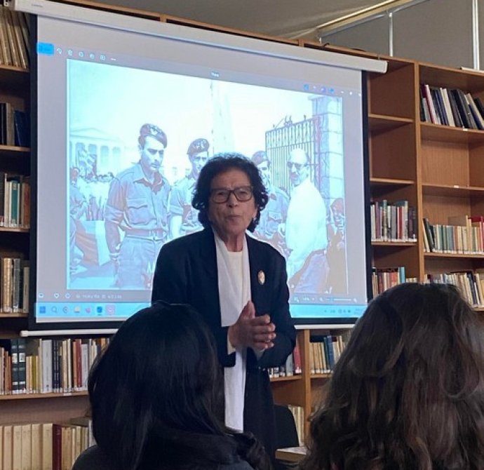 Η ΑΔΕΛΦΗ ΤΟΥ ΗΡΩΑ ΤΑΣΟΥ ΜΑΡΚΟΥ, Κ. ΕΛΕΝΗ ΜΟΣΦΙΛΗ ΜΙΛΑ ΣΤΟΥΣ ΜΑΘΗΤΕΣ