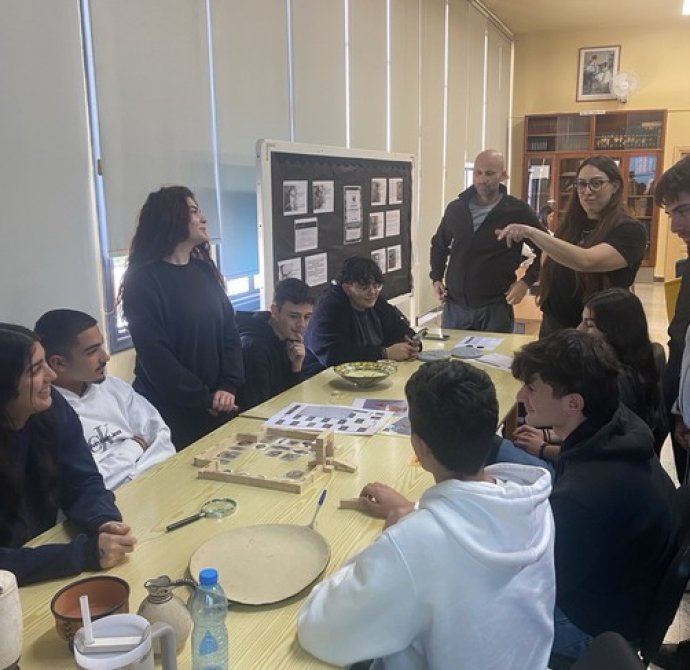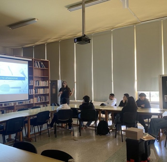 Η πρώτη πραγματοποιήθηκε στις 10 Ιανουαρίου. Είχε θέμα «Μουσειοβαλίτσα Αισθήσεων του Πολιτιστικού Ιδρύματος Τραπέζης Κύπρου (ΠΙΤΚ): Ανακαλύπτοντας την Αρχαιολογία μέσα από τις συλλογές του ΠΙΤΚ». Την παρουσίαση έκανε η ιστορικός/αρχαιολόγος, λειτουργός του ΠΙΤΚ, Άντρεα Ορατίου. Πρόκειται για ένα εκπαιδευτικό πολυαισθητηριακό πρόγραμμα εν κινήσει, που σκοπό έχει να φέρει άτομα που βρίσκονται μακριά από τα μουσεία σε επαφή με μουσειακά αντικείμενα. Η Μουσειοβαλίτσα περιλάμβανε αντίγραφα εκθεμάτων από τις συλλογές του Αρχαιολογικού και Νομισματικού Μουσείου του ΠΙΤΚ, τα οποία οι μαθητές μας μπόρεσαν να αγγίξουν και να περιεργαστούν μέσα από διαδραστικό παιχνίδι, γνωρίζοντας έτσι τον πολιτισμό της Κύπρου.