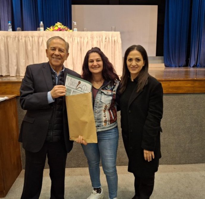 Την Παρασκευή, 14 Φεβρουαρίου 2025, δύο εκπαιδευτικοί-φιλόλογοι του σχολείου μας, η Χαρά Τοφαλλή, υπεύθυνη εκδόσεων και η Ιωάννα Βασιλειάδου, μέλος της επιτροπής εκδόσεων, έλαβαν μέρος σε ημερίδα με τίτλο «Μαθητική Δημοσιογραφία» που διοργάνωσε η Διεύθυνση Μέσης Γενικής Εκπαίδευσης του Υπουργείου Παιδείας, Αθλητισμού και Νεολαίας (ΥΠΑΝ), σε συνεργασία με το Παιδαγωγικό Ινστιτούτο.